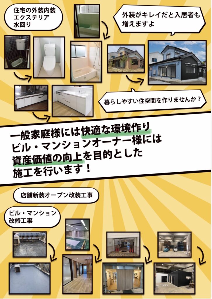 建築工事・土木工事の企画・設計・施工管理・建築リフォーム工事・解体工事・宅建業他